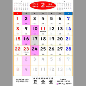 2026/02/01:2月営業カレンダを公開しました