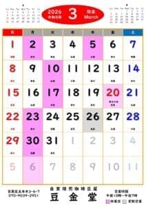 2026/02/28:3月営業カレンダを公開しました