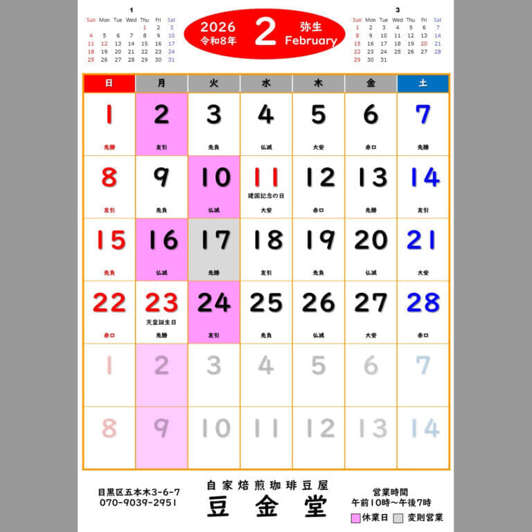 26年2月の営業カレンダーです📅